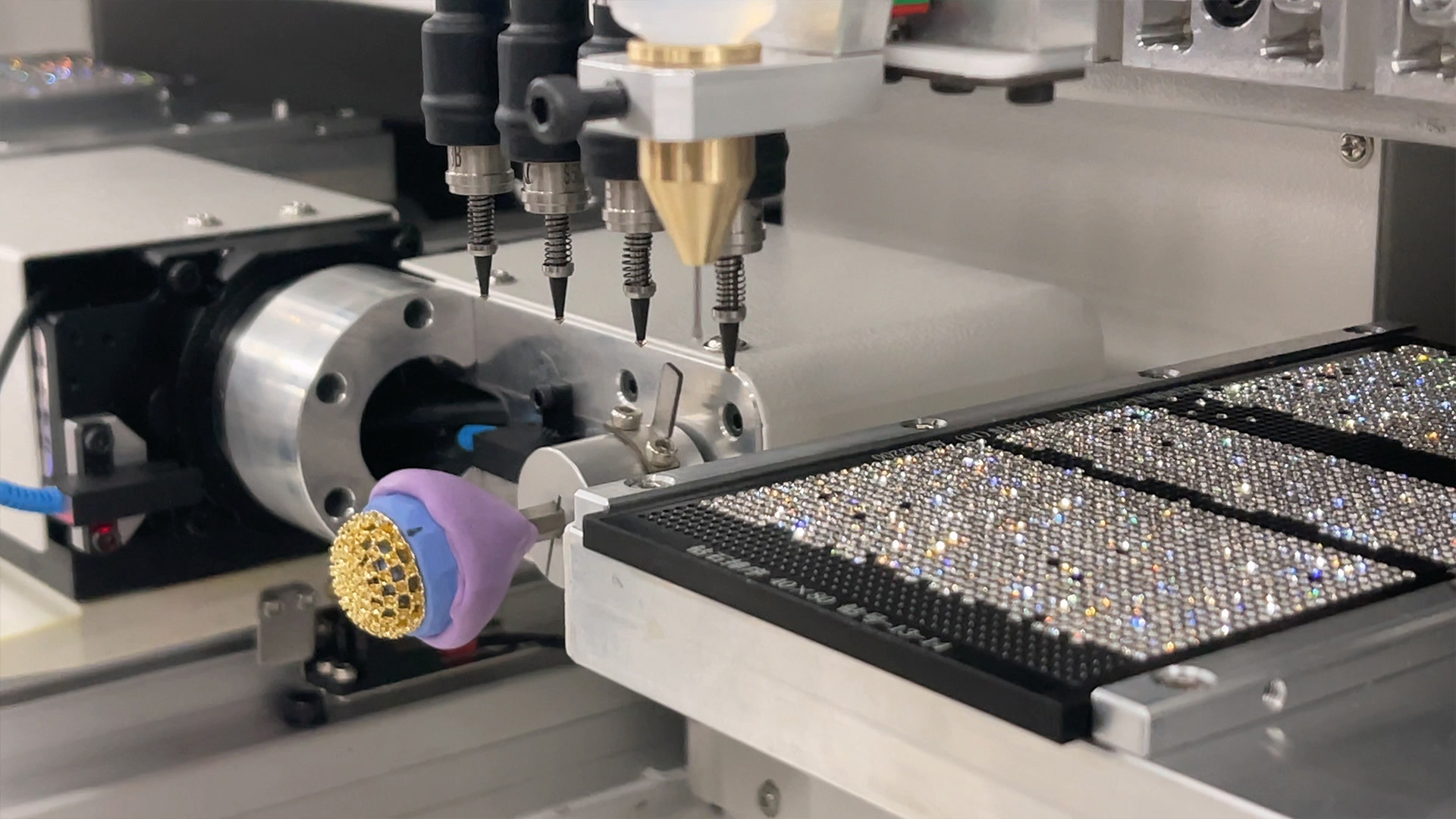 那么,饰品点钻用什么工具快?答案很明确:自动点钻机比人工工具更快、更稳定。自动点钻机通过视觉识别、轨迹控制、定量出胶等功能,实现一颗颗钻石快速、精准地贴附在饰品上。加工速度可达到人工的数倍,并能保持一致的点钻位置和美观度,尤其适用于饰品、珠宝配件、手机壳配件、合金饰品、树脂饰品等批量化生产场景。