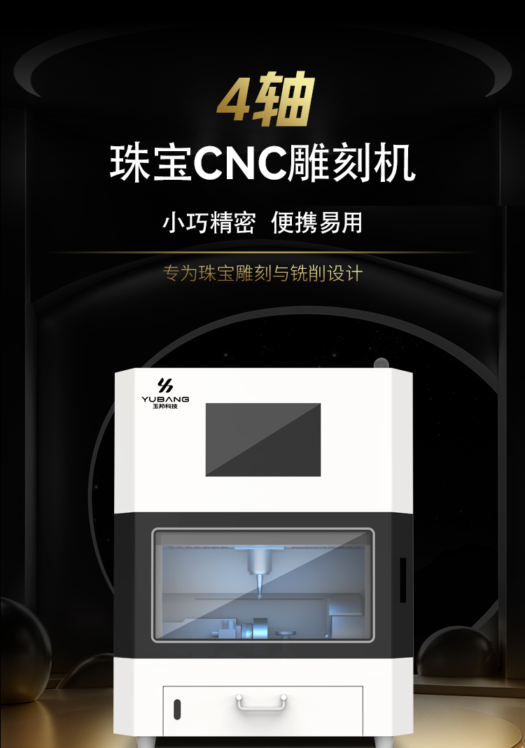 4 轴珠宝CNC雕刻机,高精度雕刻铣削加工设备!金银首饰加工专用,雕刻铣削一体,适配各类首饰精细加工。