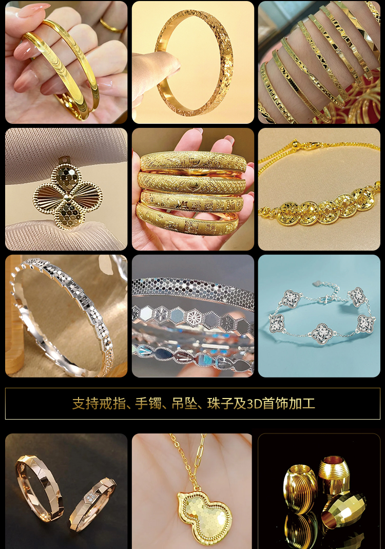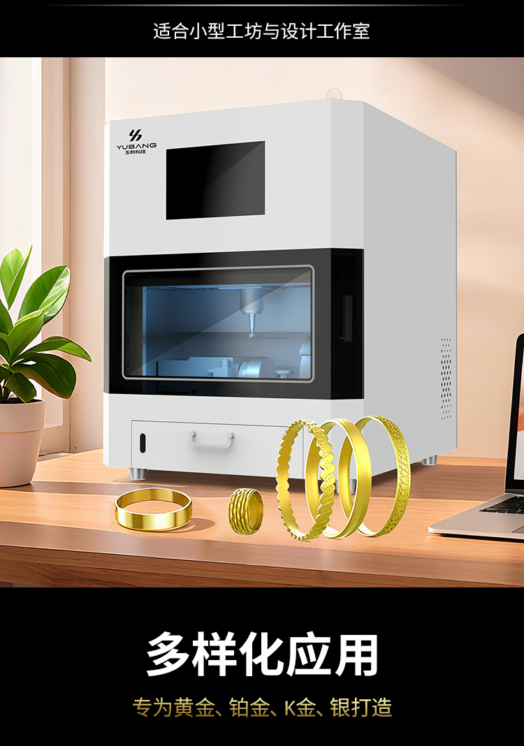 4轴珠宝CNC雕刻机是一款专为高精度珠宝雕刻与铣削而打造的小型数控设备。整机占地面积小、运输便利,非常适合珠宝加工车间、个人工作室及中小型工厂使用。设备可加工黄金、铂金、K金、白银等贵金属材料,能够精准完成戒指、手镯、吊坠、珠子及各种3D立体设计的精细加工。