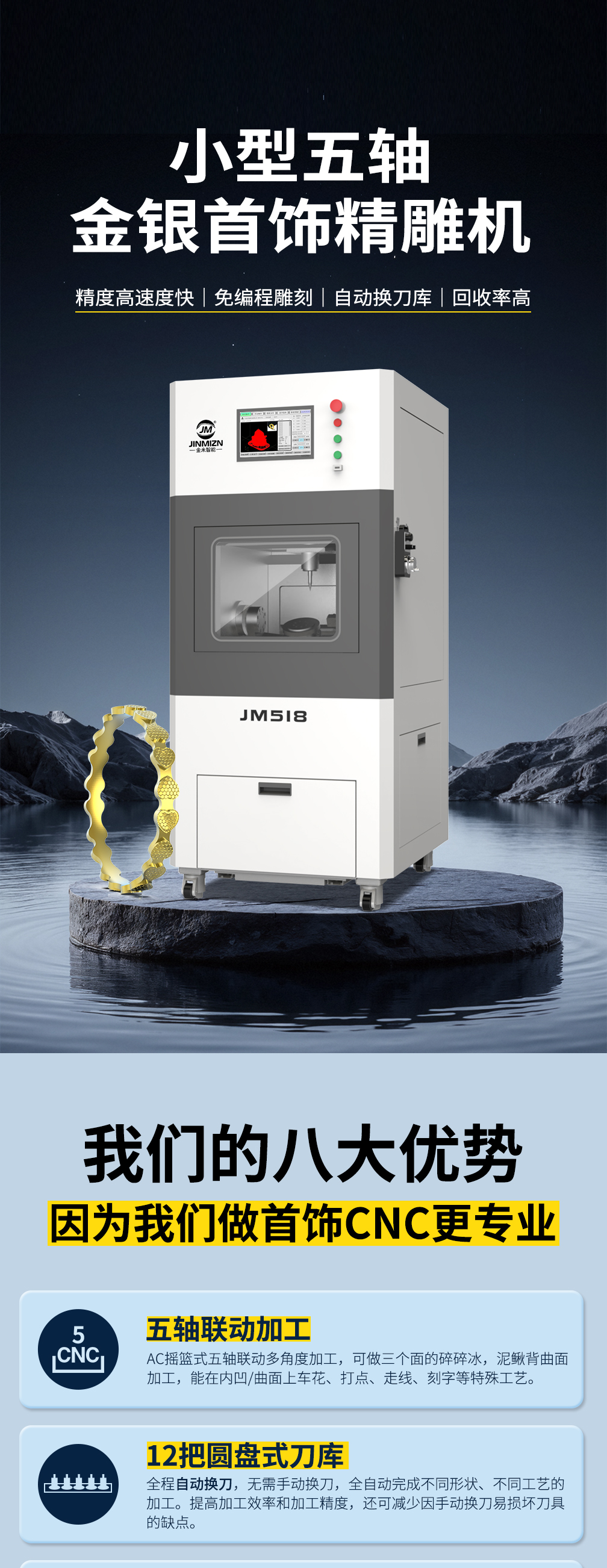 网站首页    雕刻机器    五轴 CNC 金银首饰精雕机,立体精密雕刻专用设备!360° 全方位雕刻无盲区,精度高造型准,适配高端首饰定制。