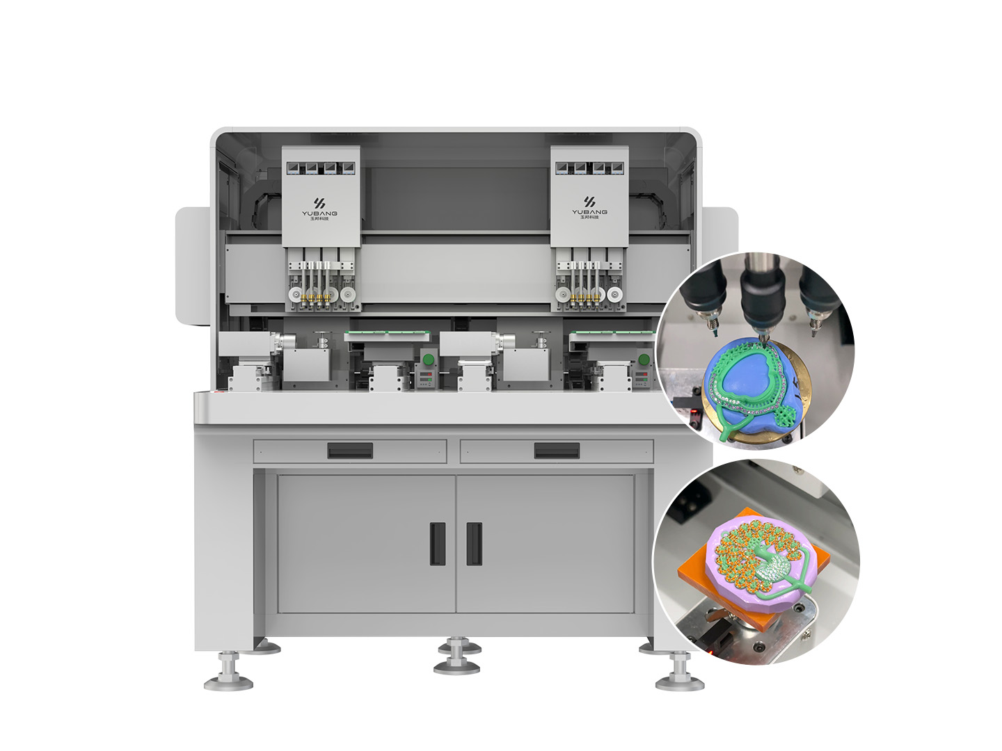 四针头双工位点钻机,立体五轴精准点钻设备!水钻镶嵌粘钻利器,双工位并行省人工,精准高效适配多样镶嵌需求